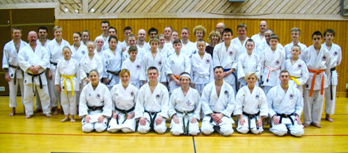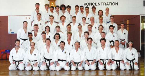 Wadokai-Master-seminar 29/4-1/5-1995 med Arakawa Sensei 8. Dan. 6 deltog fra Danmark, f.h.: Kim Hansen (forreste række, yderst). 3. række: yderst t.h. Henrik Eriksen, Jesper Thorhauge ved siden af, Eva Ehrnrooth nr. 8 f.h., Carsten Gissel 4. rk. yderst t.h, Torsten Land Daugaard, bagerste rk. nr. 2 fra højre. Ohgami Sensei og Arakawa Sensei forrest i midten.