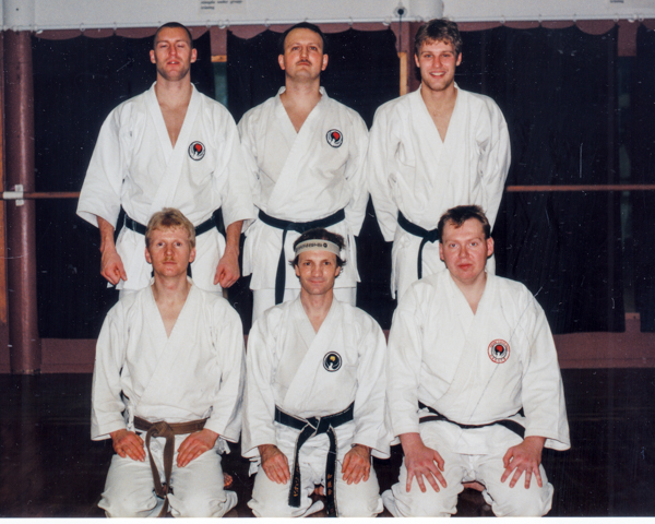 Wadokai Master Seminar 29/11-1/12 1996 med Hakoishi Sensei 8. Dan. F.v: Øverste rk.: Henning Gudmundsen, Claus Nedergaard, Johnny Maxsø. Forrest rk.: Tom Jakobsen, Kim Hansen, Tonny Jensen. Afholdt i Gøteborg.