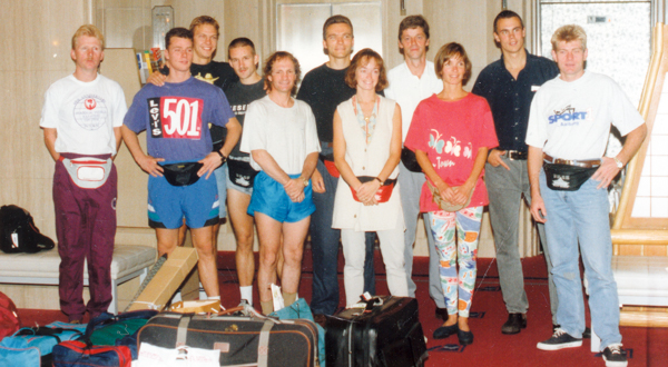 Delegationen ved World Wadokai Cup 24/8 – 5/9 – 1994 i Tokyo, f.v: Tom Jakobsen, Allan Busk, Lars Eriksen, Jens Poulsen, Kim Hansen, Palle T. Jensen, Eva Ehrnrooth, Flemming Almtorp, Lise Kierkegaard, Nicolai Jack, Leif Pedersen.